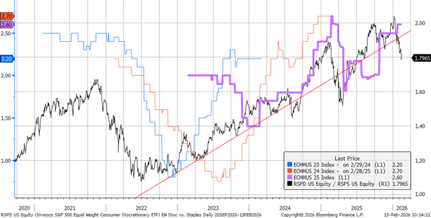 Equal Weigh Discretionary vs. Staples and Household Consumption Forecasts