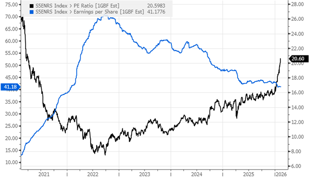 Energy Sector 12 Month Forward PE Multiple and EPS