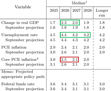 The Fed did not deliver any surprise twists at its December meeting, but it did leave a trail of breadcrumbs for us to follow as we attempt to deduce what might be in store for monetary policy in 2026. Let’s start with the Fed’s Summary of Economic Projections, which are updated four times each year