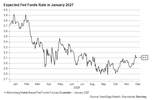 For most of 2025, the knives have been out for the Powell-led Fed, with a torrent of criticism from key members of the Trump administration, including now-Fed Governor Stephen Miran and likely Powell successor Kevin Hassett. Assuming Hassett gets the post (Polymarket has his chances at an imposing 74%), he will take the reins of the most divided FOMC in memory. The gap between the highest and lowest policy rate forecasts for 2026 in this past week’s new “dot plot” is just shy of 2%, and there is no central tendency among committee members.