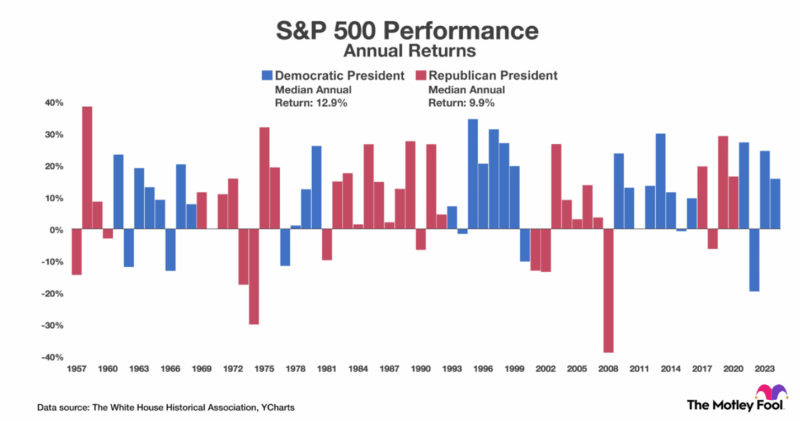 At the same time, while politics can be an emotional topic for investors of all ideological stripes, making large changes to an asset allocation in anticipation of an outcome is usually the wrong course of action. There is no historical correlation between investment returns and the presidential party in power.