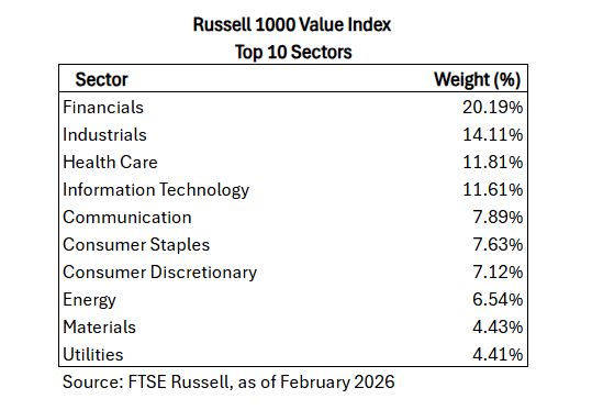 The top ten weights of the Value index also include Mag 7 stock Amazon, AI memory-chip momentum flyer Micron, and other momentum darlings like Walmart and JP Morgan (both are significant weights in momentum factor ETFs).