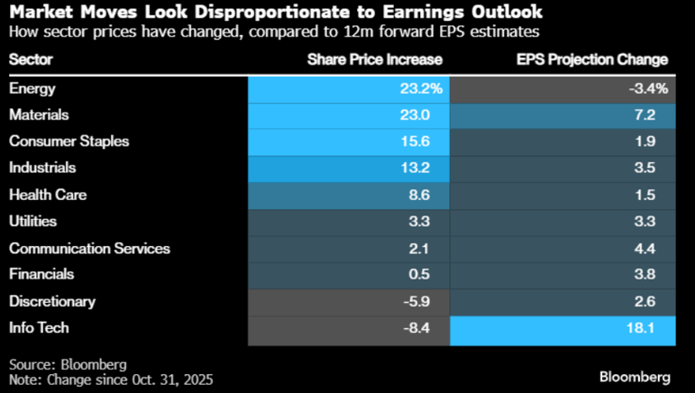 The relative performance chart below (the line going up means that Growth is outperforming Value) shows this rotation since early October, with Growth nearly giving up all of its outperformance over Value since the Liberation Day lows, which of course takes on a new meaning after Friday’s SCOTUS ruling that President Trump’s sweeping tariffs were unconstitutional.