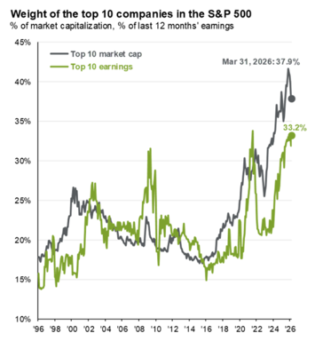 The broadening out “myth” was also the hope that the degree of concentration in the S&P 500, currently nearing 40% for the top 10 names, would start to ebb.