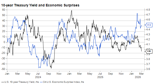The headlines about private/illiquid credit woes continue to pile up (a smattering of the headlines from the last three days alone: here, here, here, here) and likely are contributing to the safe-haven, risk-off bid we are seeing in Treasury markets, where the 10-year has resolutely broken below 4%, as seen below.