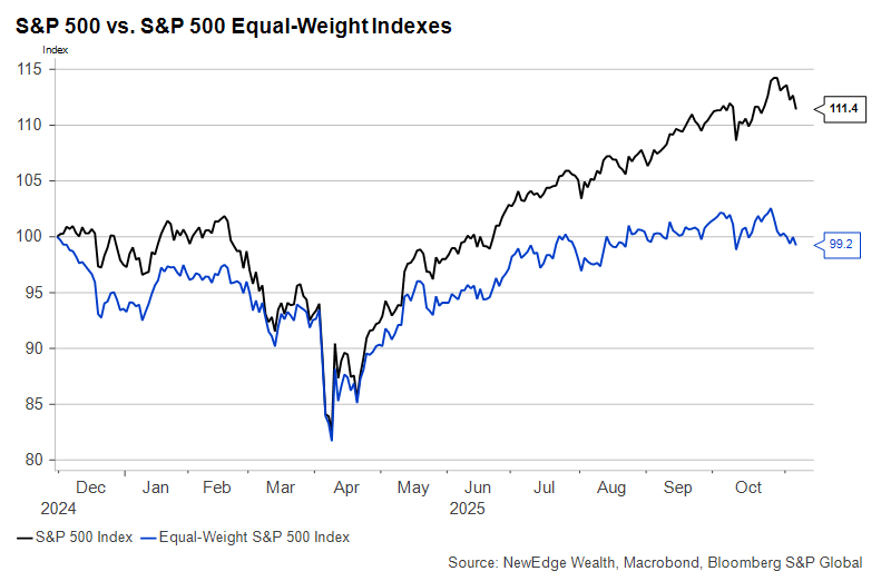 As we enter the final few weeks of 2025, investors have ridden a wave of optimism propelled by economic resilience and rising corporate profits. As we wrote last week, however, this bull market is beginning to look brittle. Assets tied to unprofitable entities, many of which have rallied powerfully in recent months, are off their highs, and overall market volatility is up.