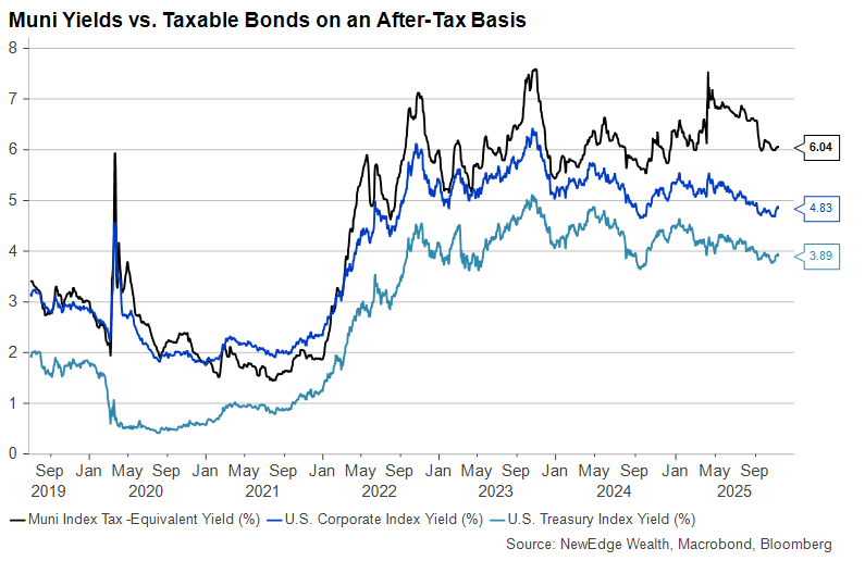 Third, we see excellent opportunities in longer-duration segments of the municipal bond market. Overall tax-equivalent yields on municipals are still north of 6%, but the steepening of the yield curve means that longer-dated bonds have cheapened the most. More importantly, correlations are returning to their pre-COVID normal. Bonds are rallying when stocks are down because broader macro concerns are affecting markets.