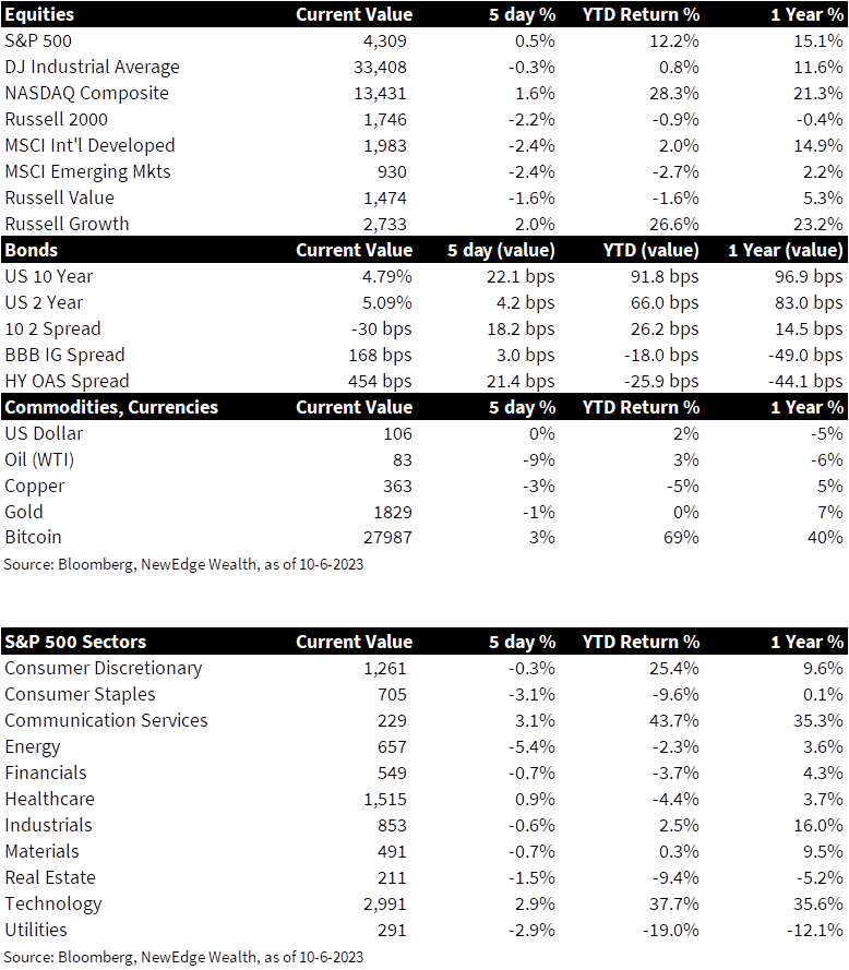 1. Equity markets climb after jobs report – Aside from the DOW Jones Index, the other major indices turned positive after investors digested today’s jobs report. Equities were initially down on the day, being that the jobs report showed strength, and quickly reversed back into the green with 10 of 11 sectors seeing positive returns for the week (consumer staples was in the red) after investors saw the gains may have been distorted by seasonal adjustments and that wage growth was actually modest.